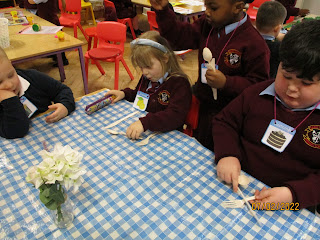 Ms Moran's Junior Infants have been learning all about the restaurant in Aistear for the month of February. The boys and girls have been busy at the role play station going into role as a chef, waiter/waitress, customer and manager and have created their own menus. They constructed their own restaurants and hotels (we have some future architects on our hands!). We made food at our play doh station and we learned how to set a table. The boys and girls had lots of fun!